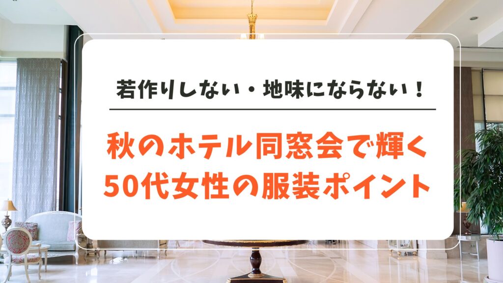 秋のホテルで開かれる同窓会。 久しぶりに再会する同級生たちの前で、「若作りには見られたくないけど、地味にもなりたくない」と悩む50代女性は多いのではないでしょうか。 この記事では、そんな大人女性に向けて秋のホテル同窓会で“上品かつ華やか”に見... -